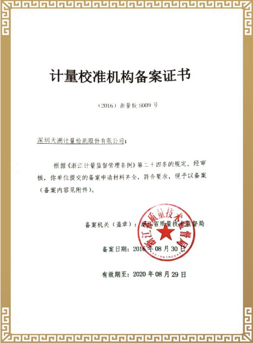 计量校准机构备案证书