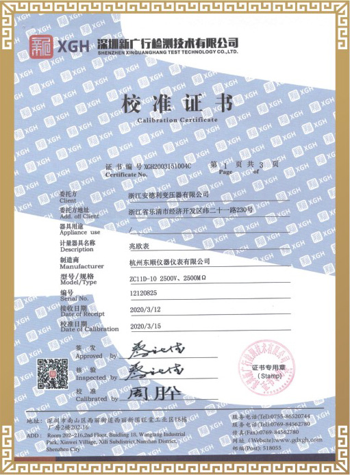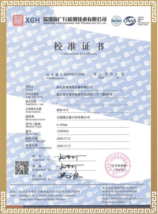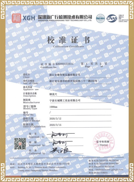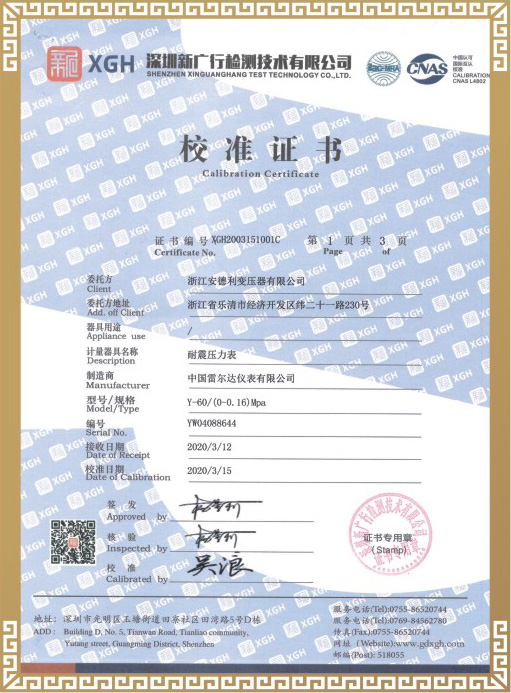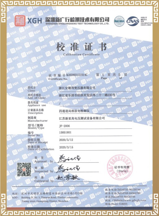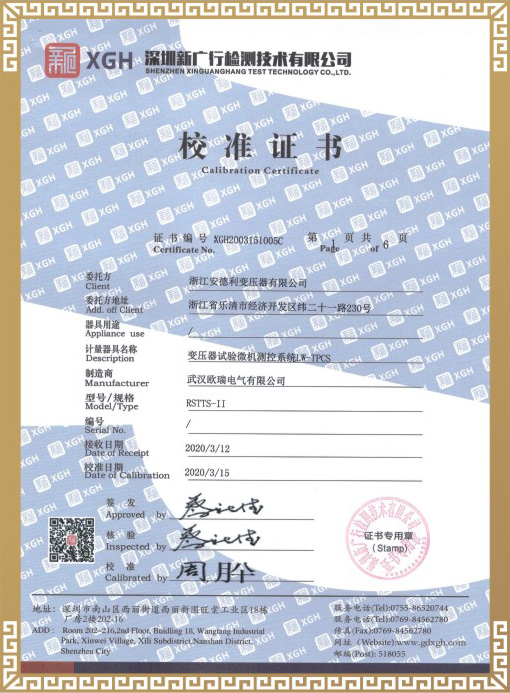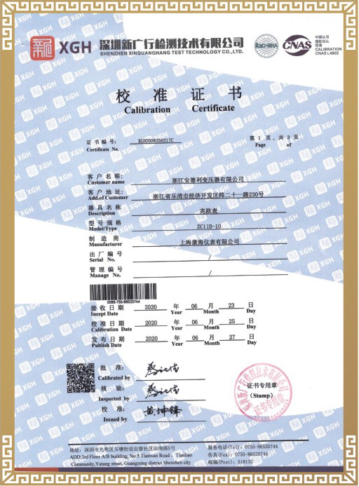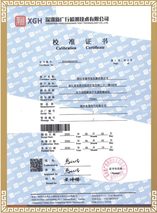 试验合格证书