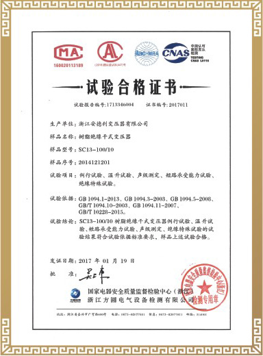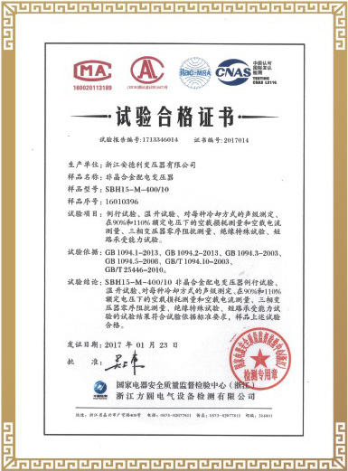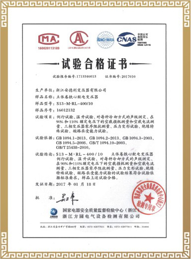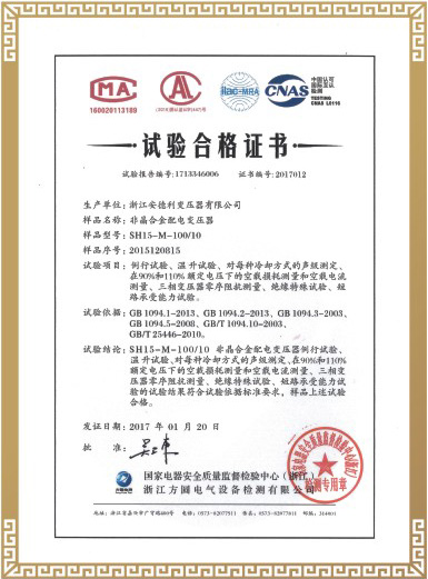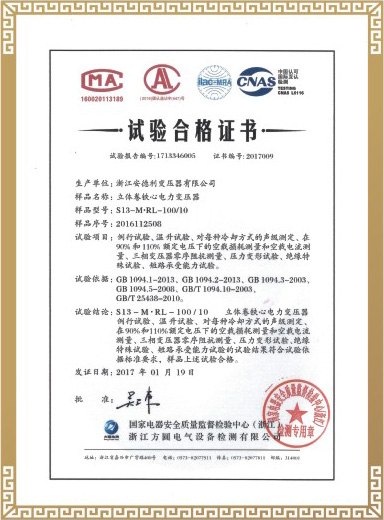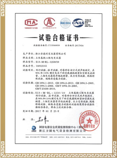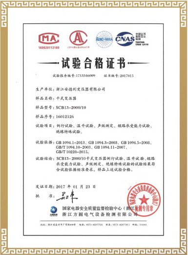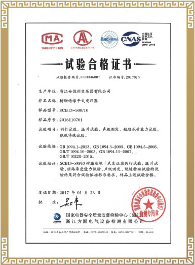 试验合格证书